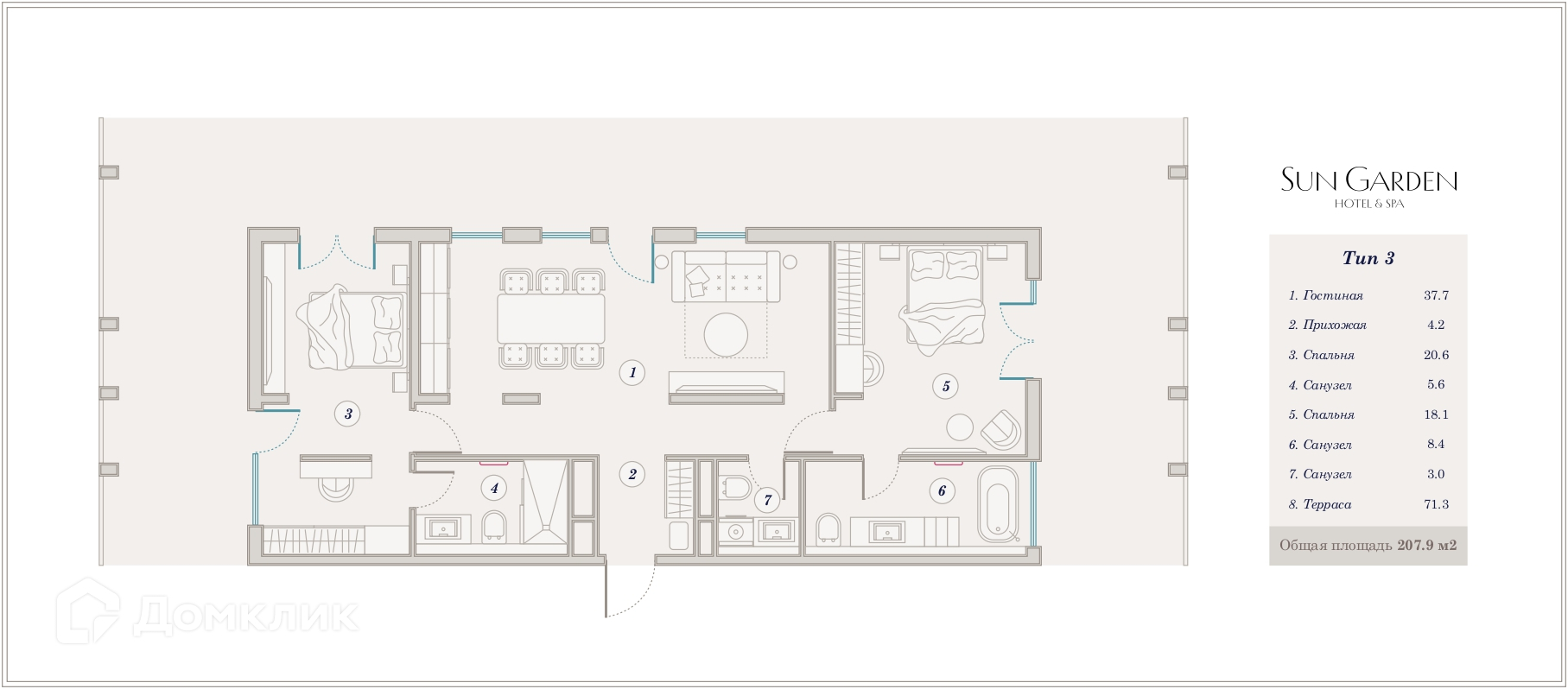 В продаже 4-комнатная квартира в новом жилом комплексе "ЖК Гостиничный комплекс Sun Garden Hotel SPA (Сан Гардэн Хотэл СПА)" 🏢. Квартира расположена на 8-м этаже 10-этажного дома. Прекрасный выбор для семьи.