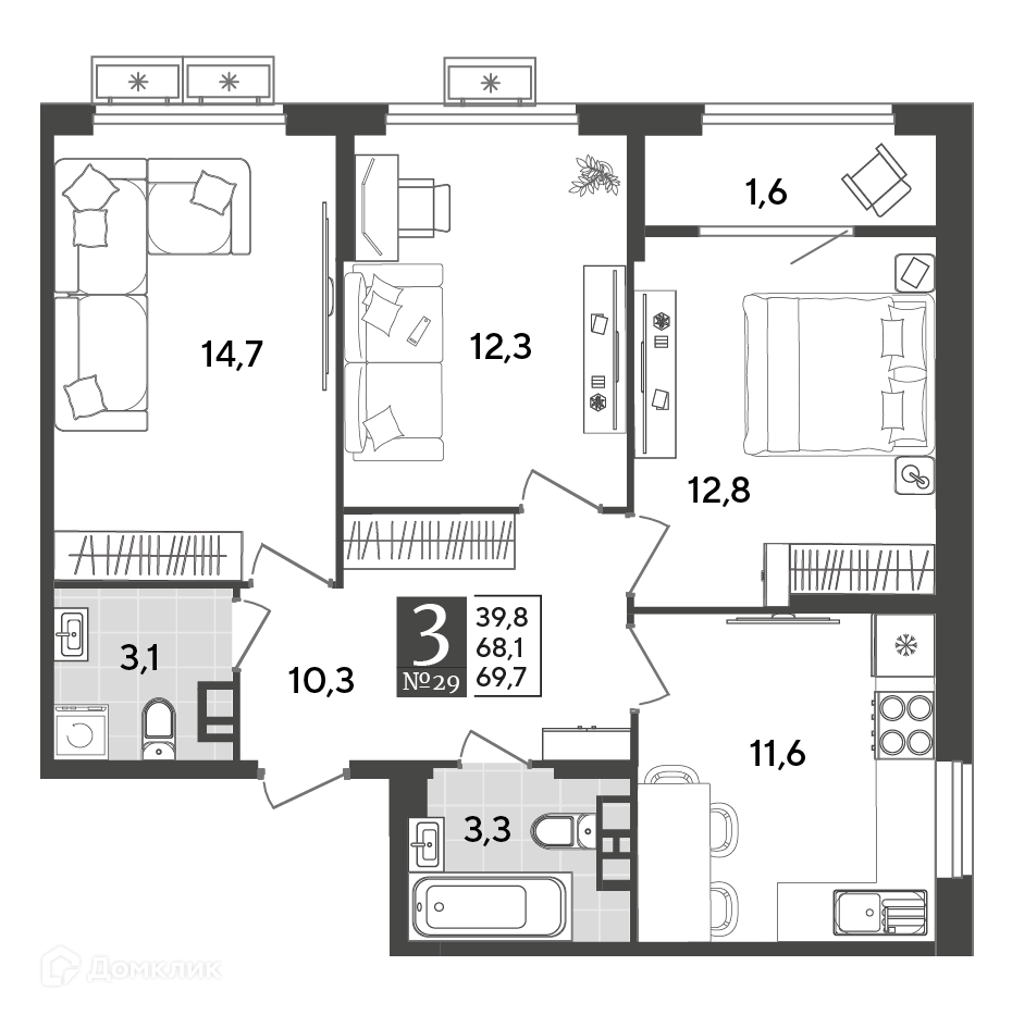 Доступна к покупке 3-комнатная квартира в востребованном жилом комплексе "ЖК Порто Ново" 🏢. Квартира расположена на 3-м этаже 19-этажного дома. Отличный вариант для инвестиций.