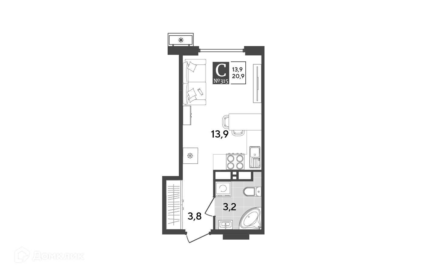 В продаже Студия в новом жилом комплексе "ЖК Порто Ново" 🏢. Квартира расположена на 13-м этаже 19-этажного дома. Прекрасный выбор для семьи.