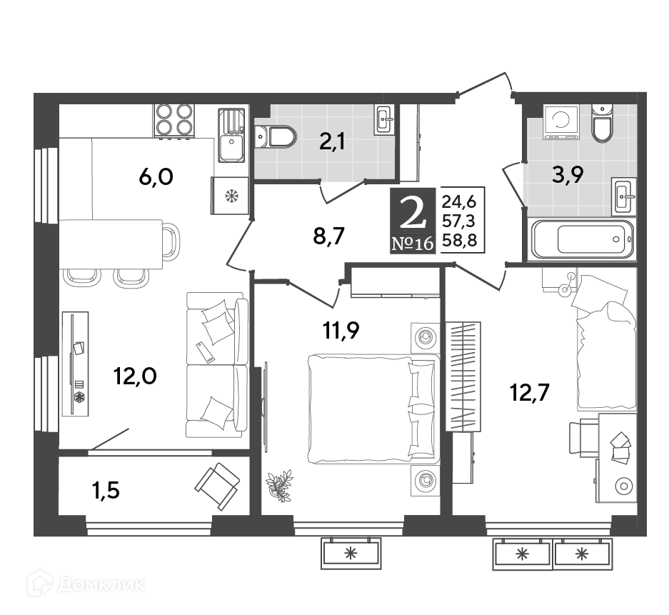 Площади квартир