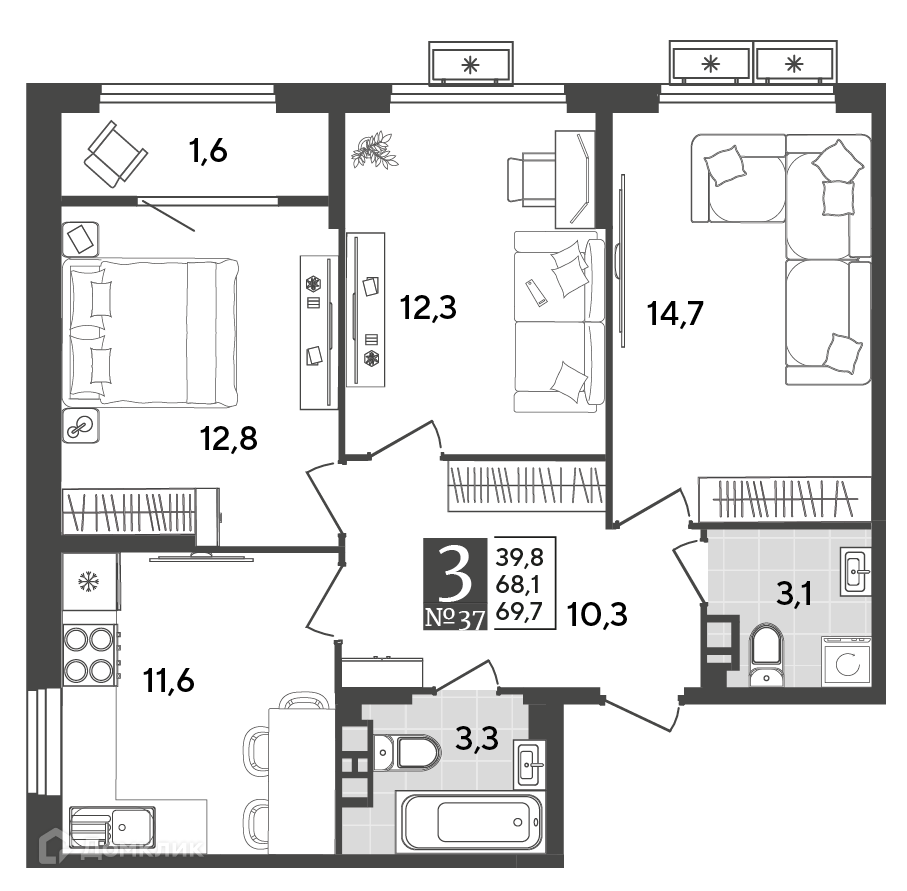 В продаже 3-комнатная квартира в востребованном жилом комплексе "ЖК Порто Ново" 🏢. Квартира расположена на 6-м этаже 19-этажного дома. Отличный вариант для семьи.