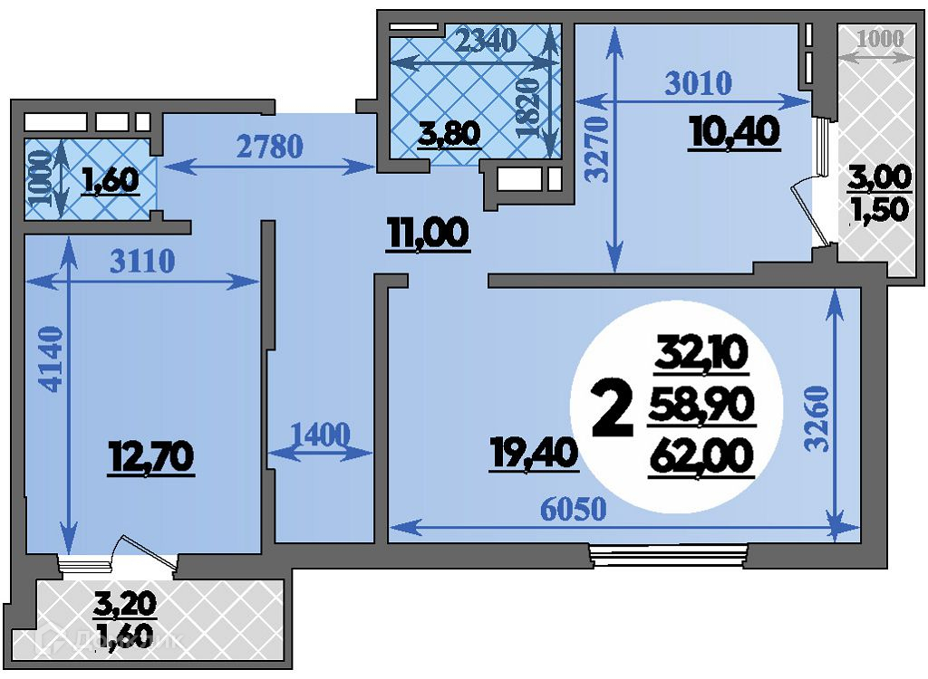 Площади квартир