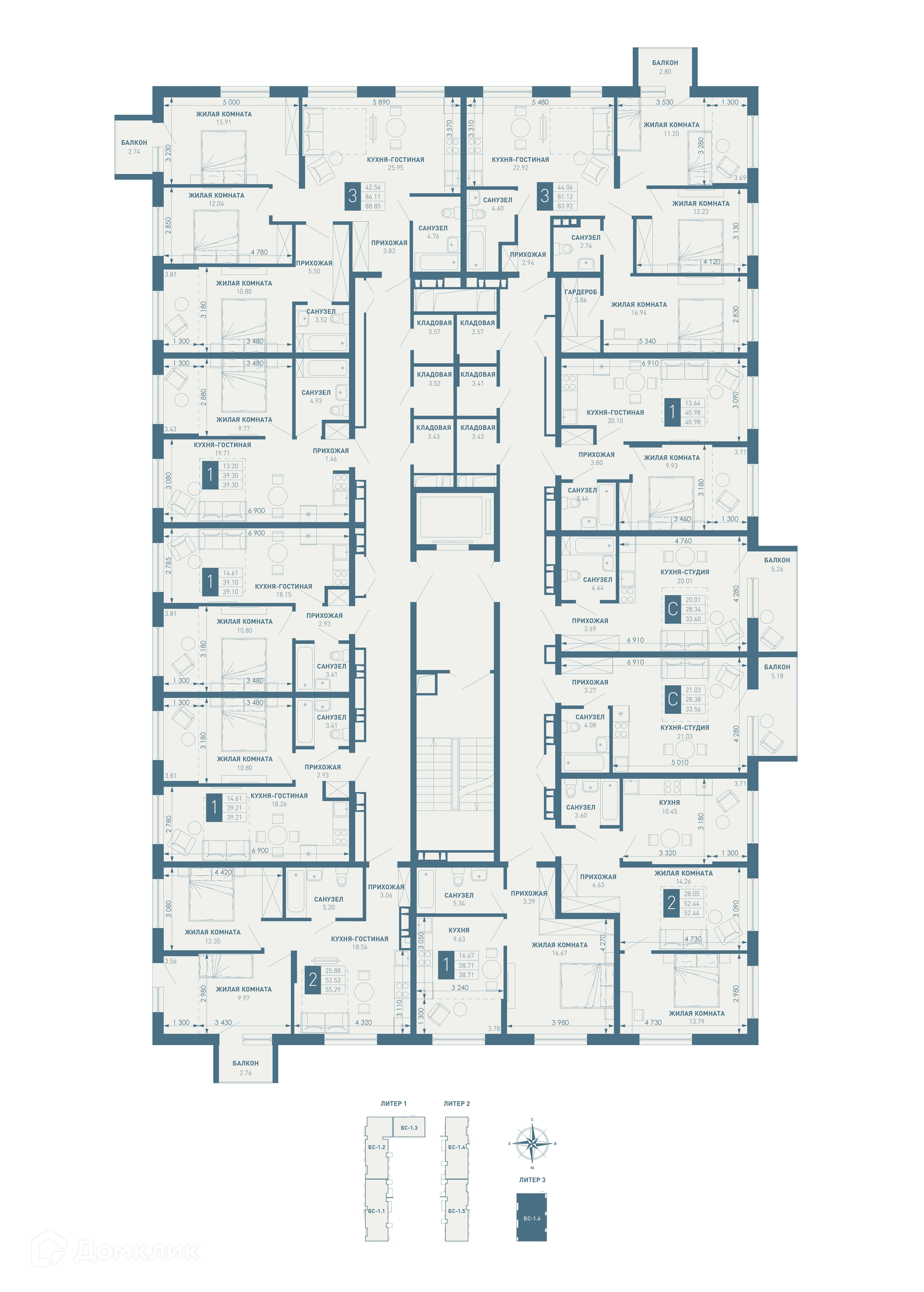 Площади квартир