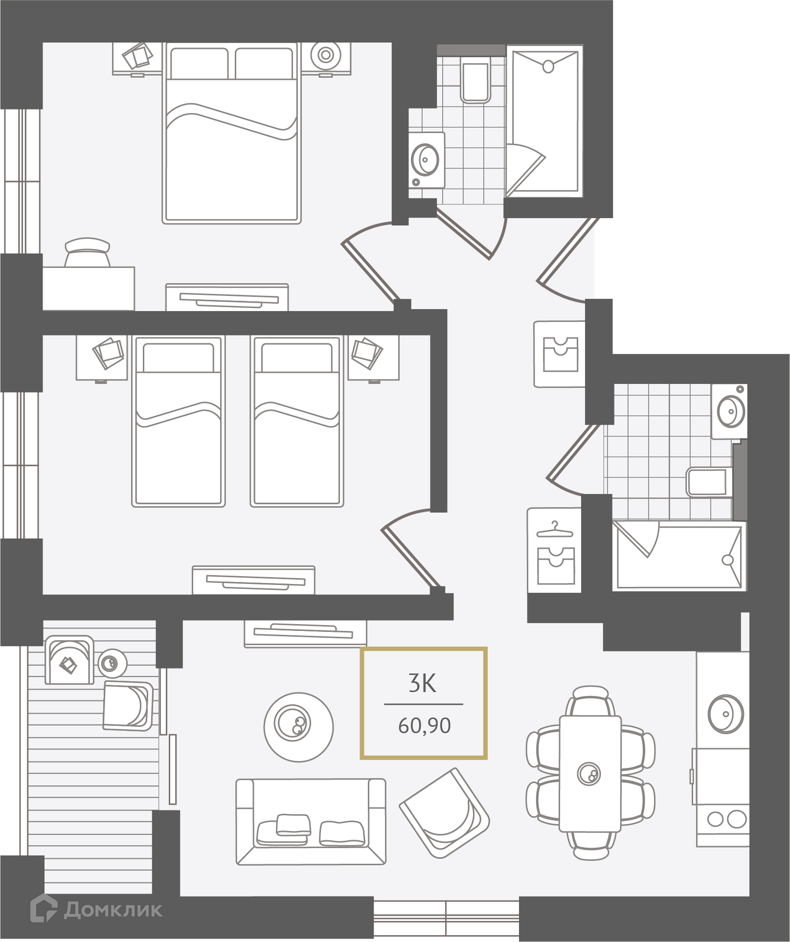 - ✅ Кухня: 0 м² — эргономичное пространство.