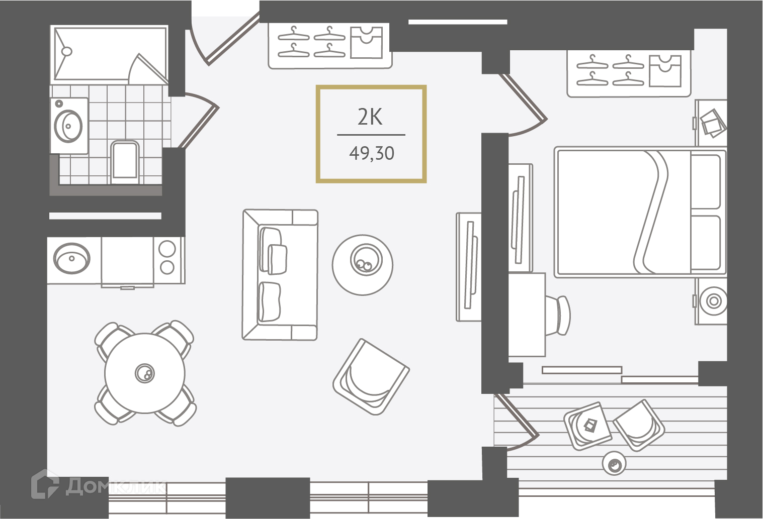 - Общая площадь: 49.9 м²