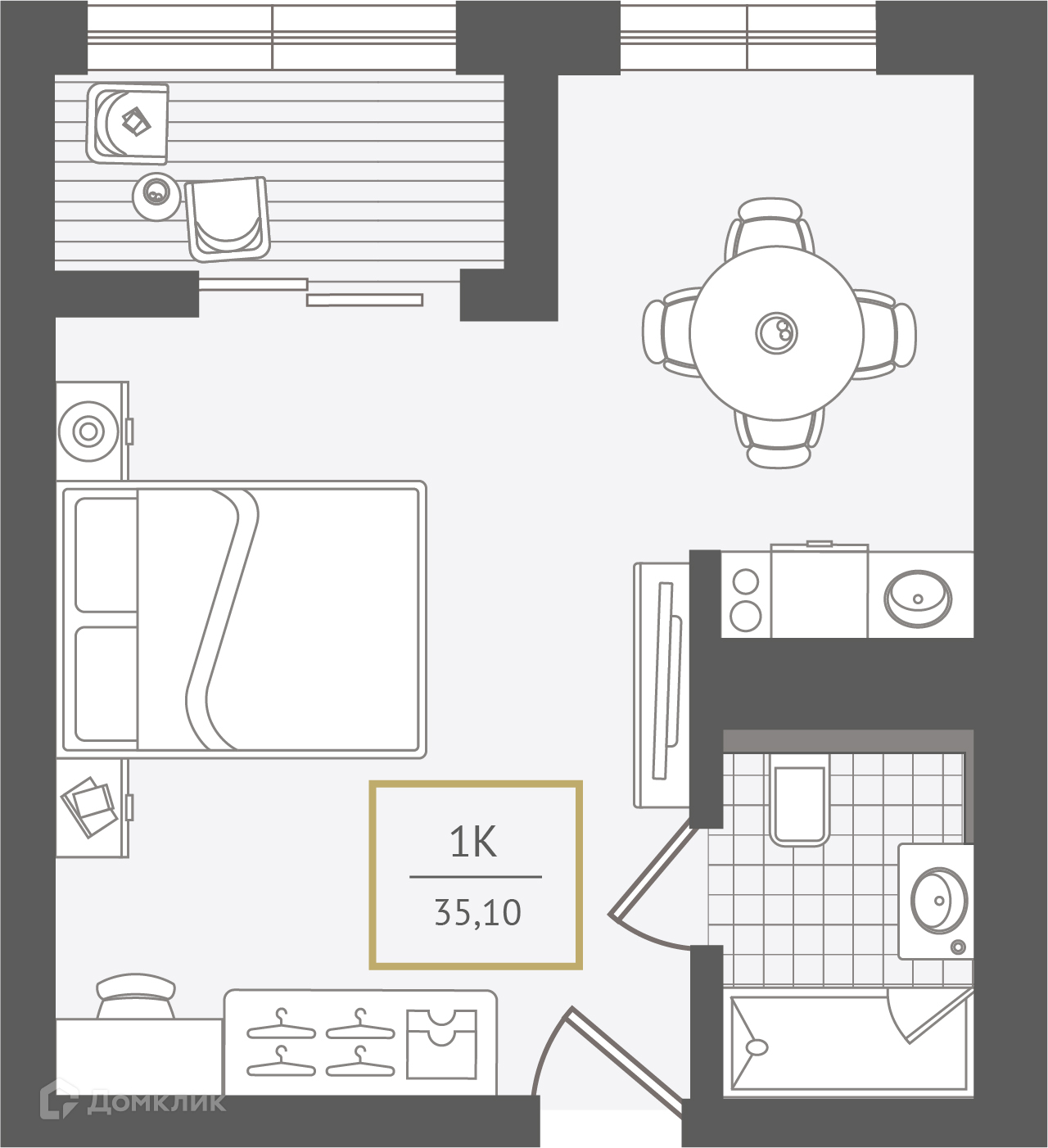 - Количество комнат: 1-комнатная квартира