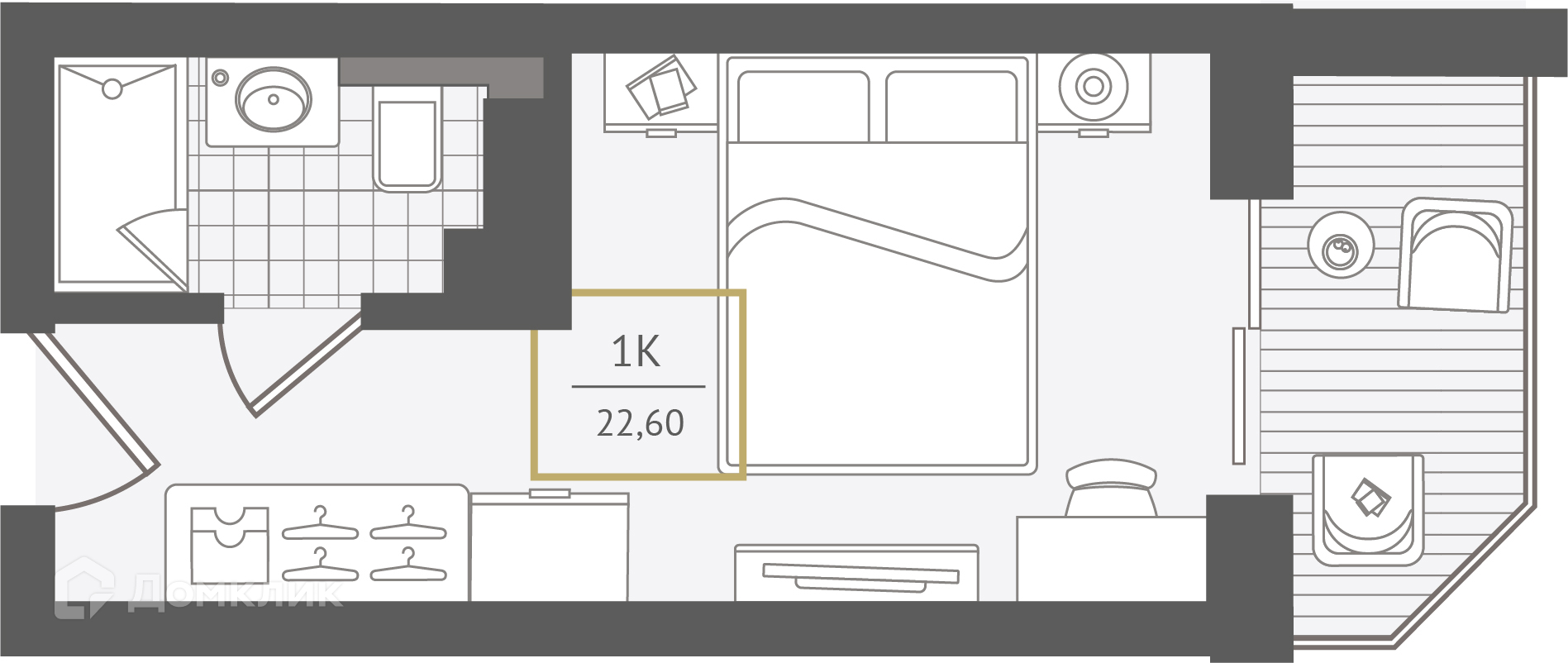 - Количество комнат: 1-комнатная квартира