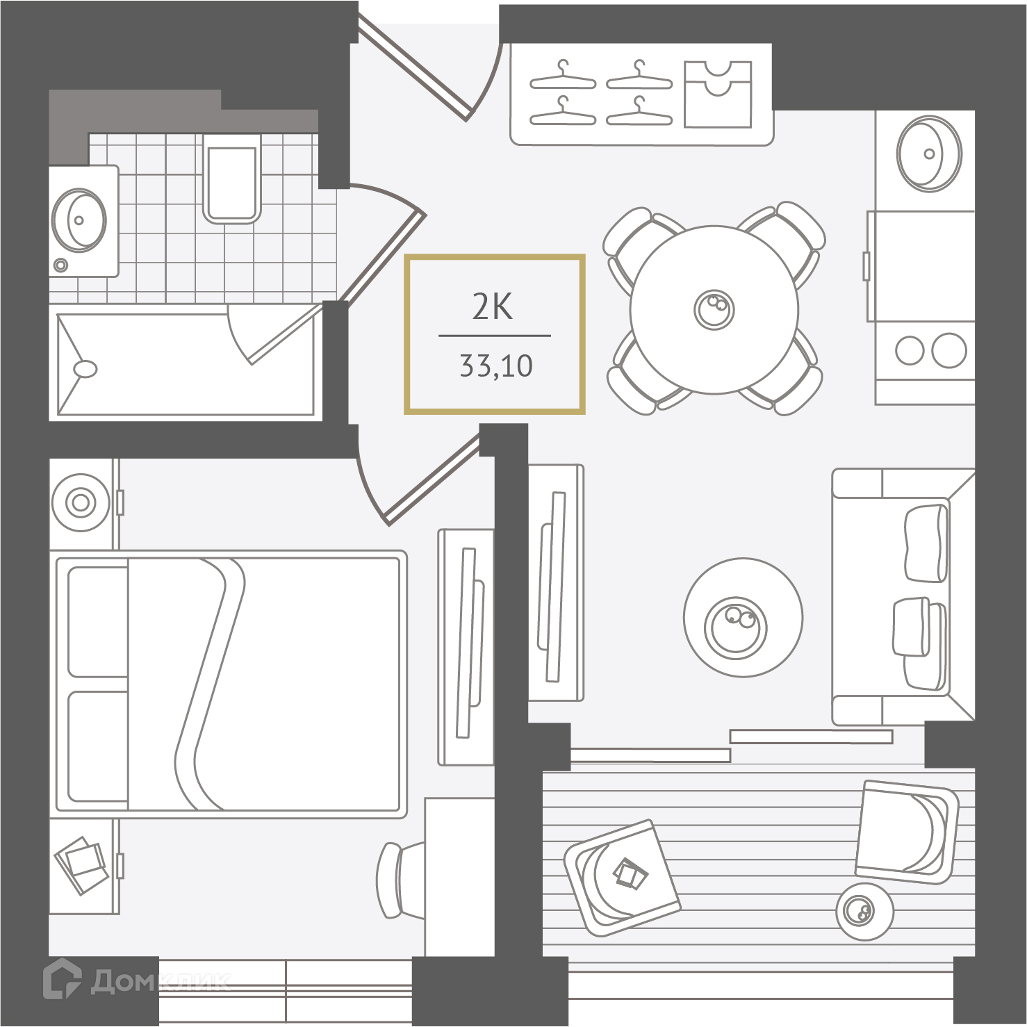 - Общая площадь: 33.2 м²