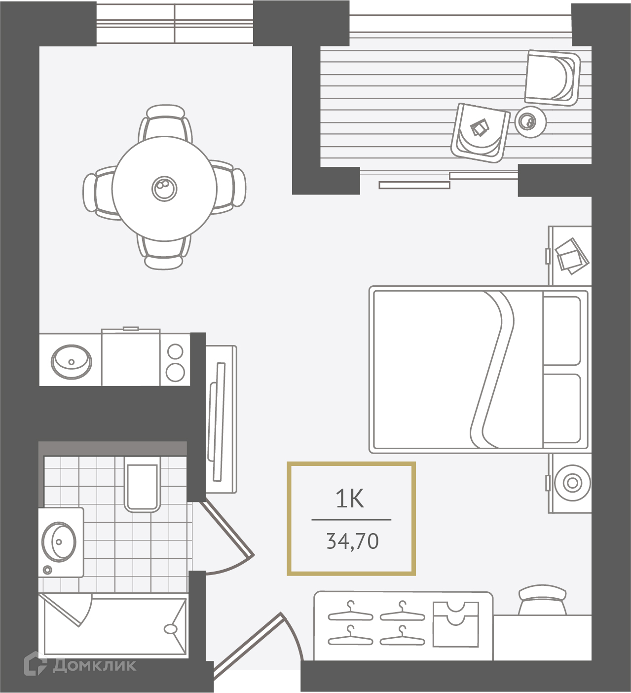 - ✅ Общая площадь: 34.5 м².