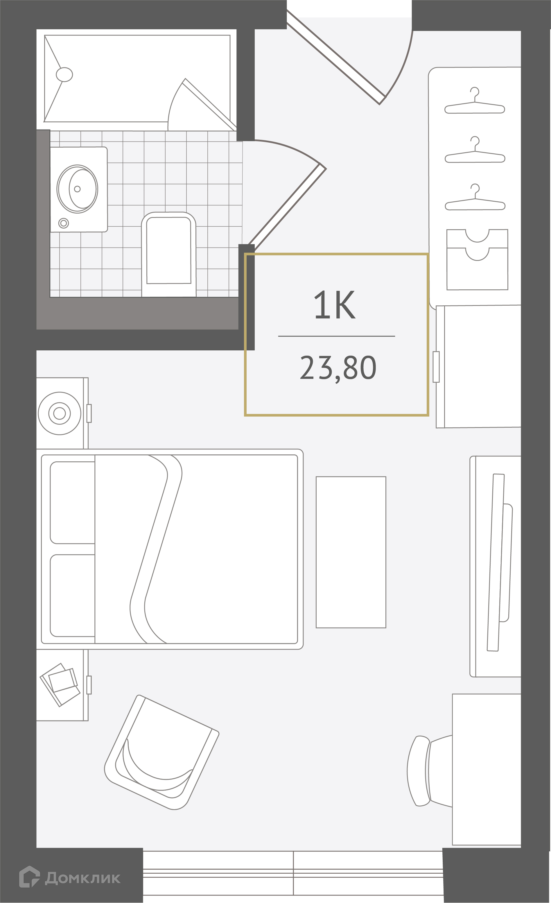 - Общая площадь: 23.8 м²