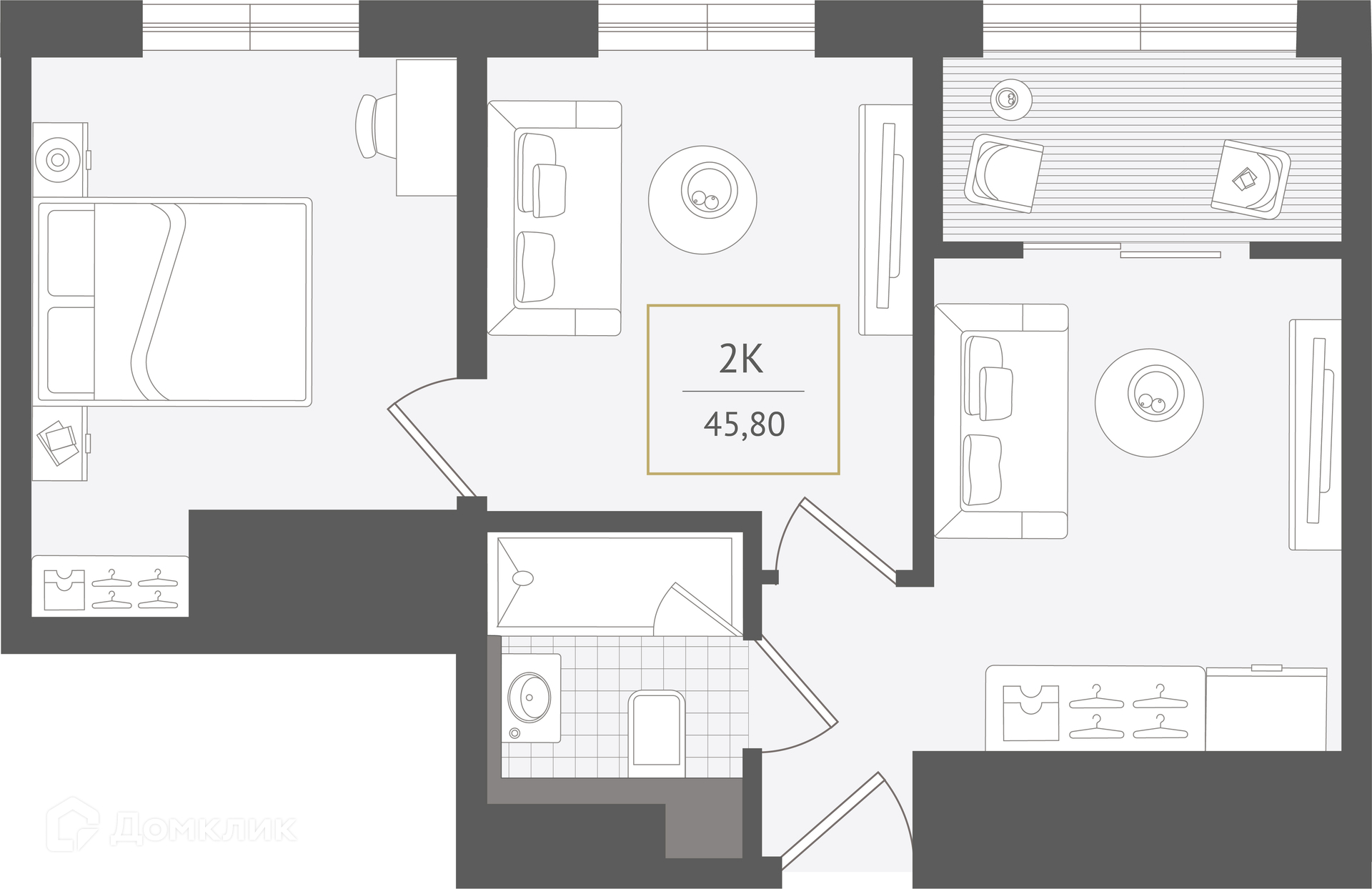 - Общая площадь: 45.8 м²