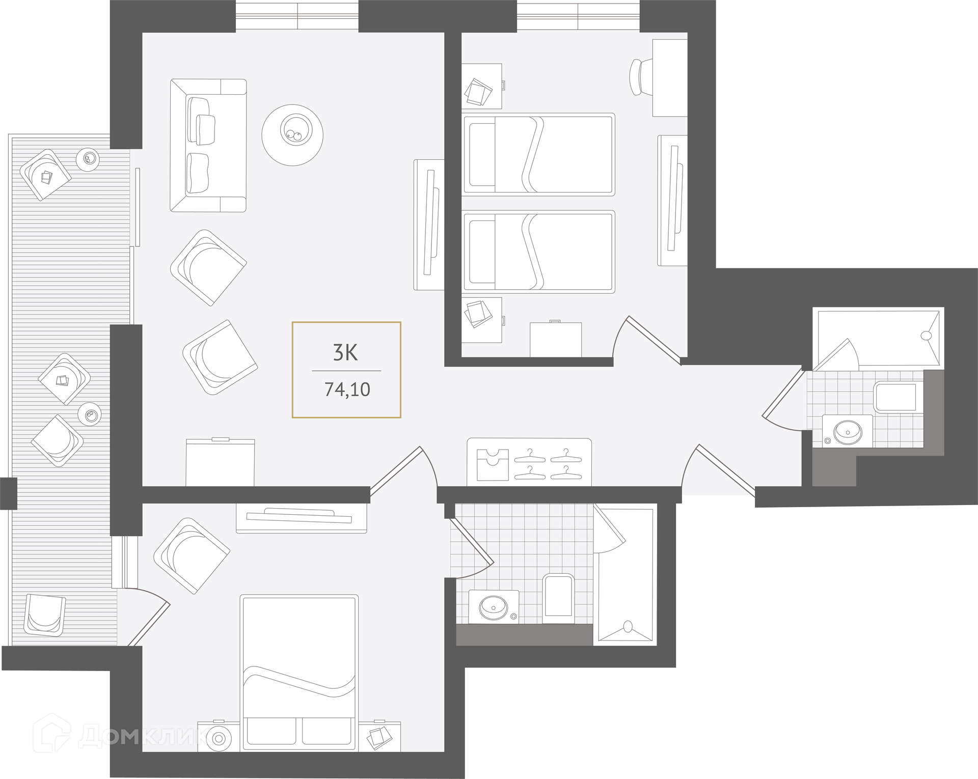 - ✅ Общая площадь: 74.1 м².