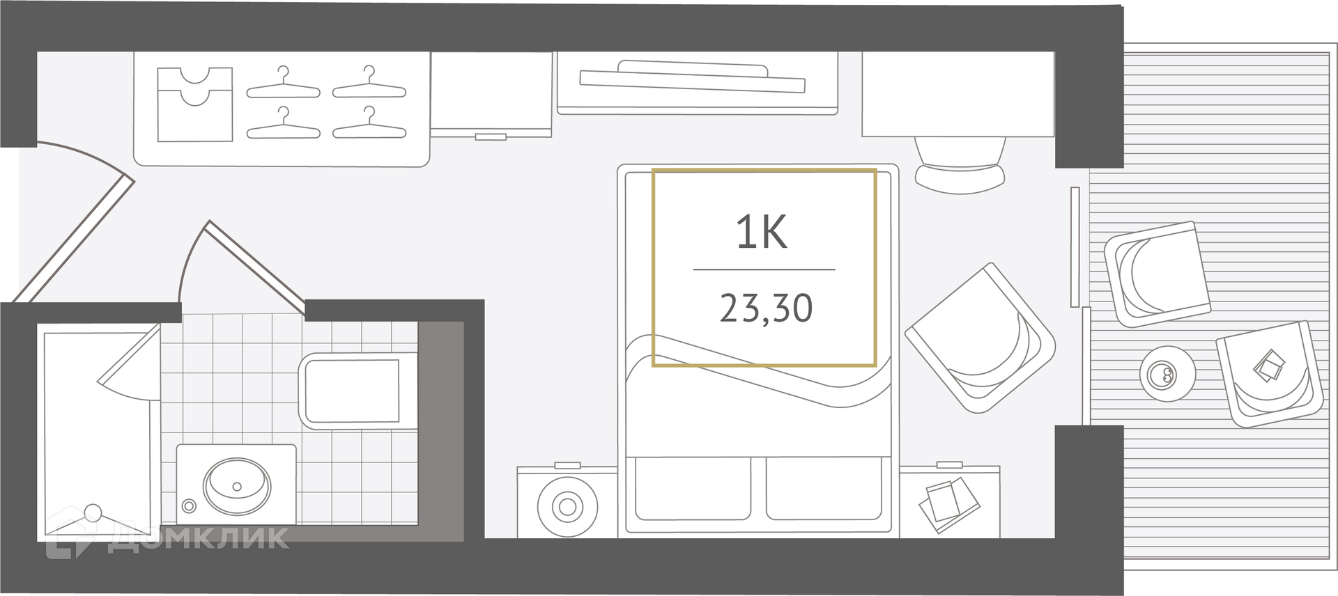 - ✅ Общая площадь: 23.3 м².