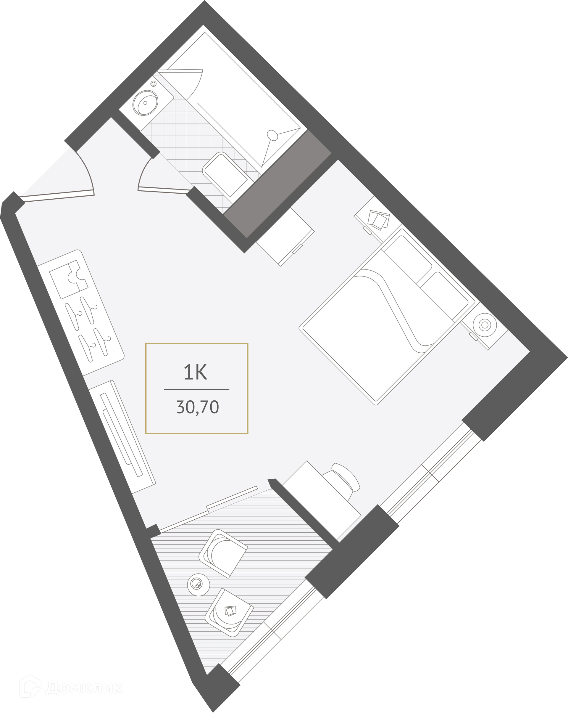 - Общая площадь: 30.7 м²
