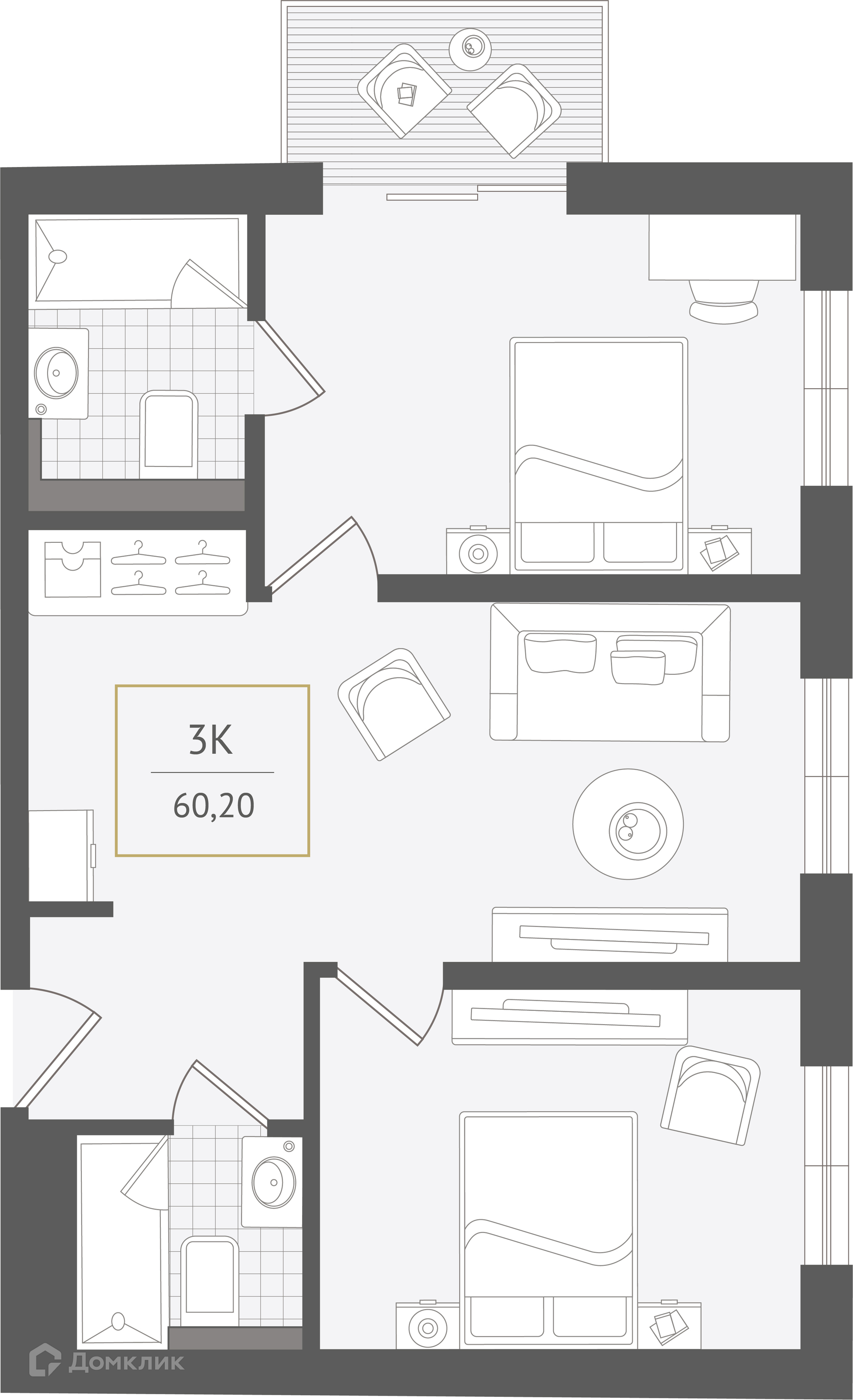 - Общая площадь: 60.2 м²