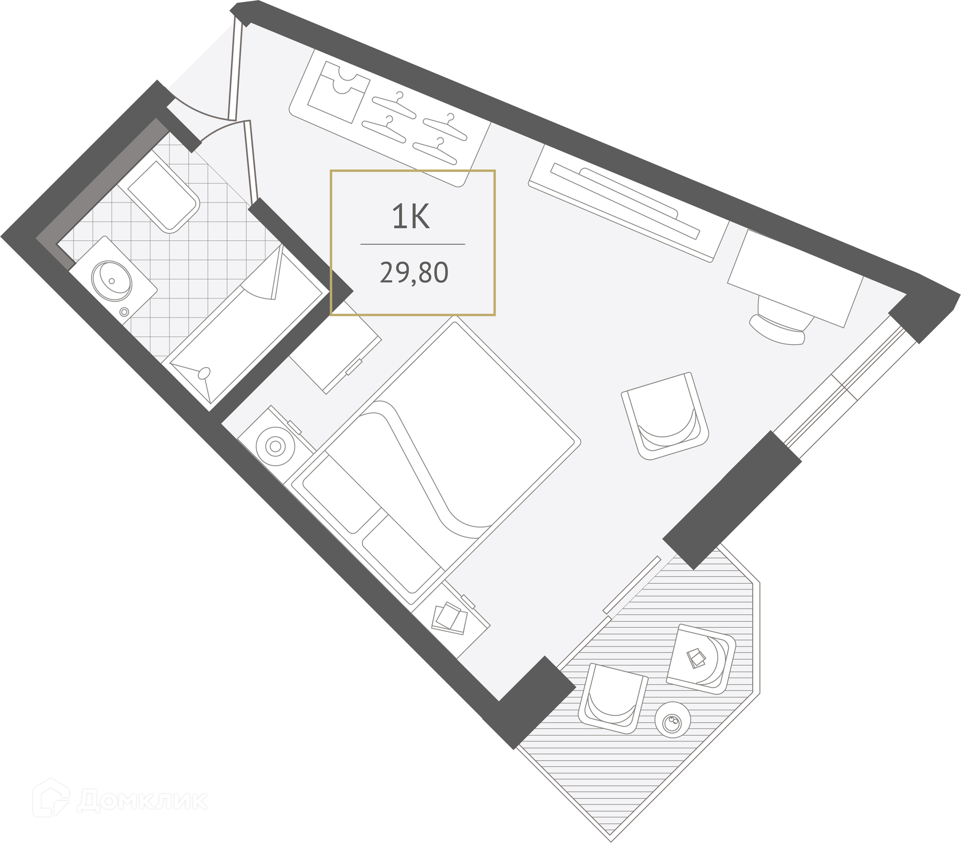 - Общая площадь: 29.8 м²