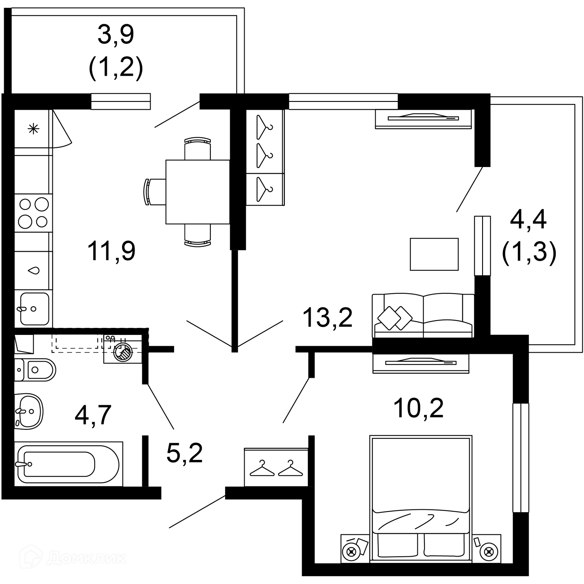 - ✅ Кухня: 11.9 м² — идеальна для семейных ужинов.