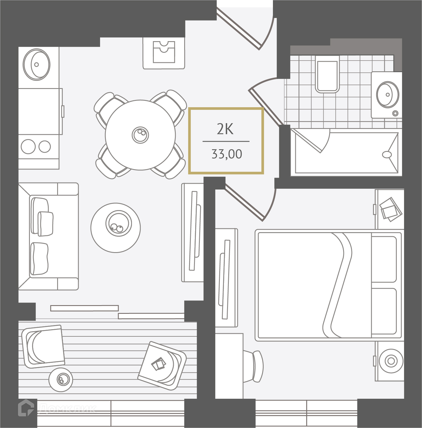 - Общая площадь: 33.6 м²