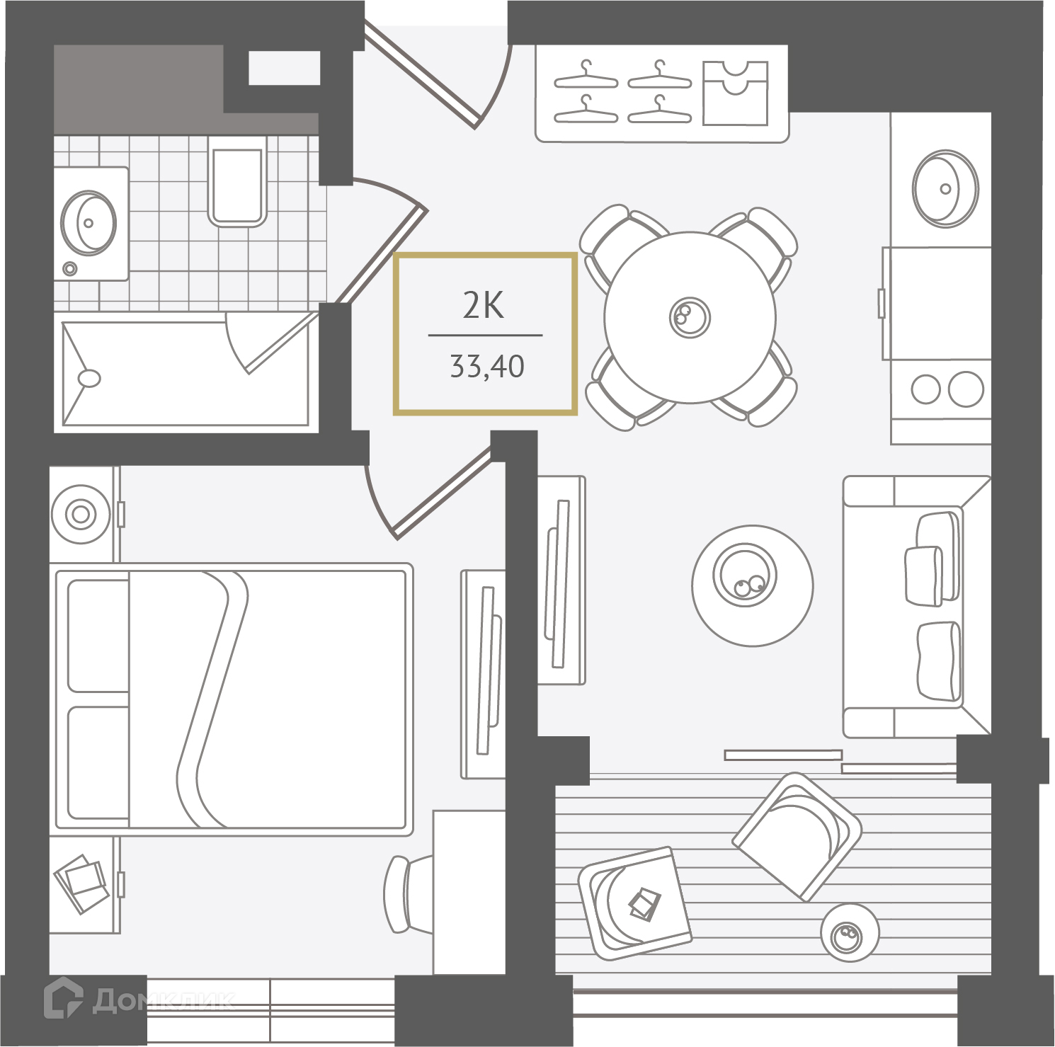 - Общая площадь: 33.9 м²