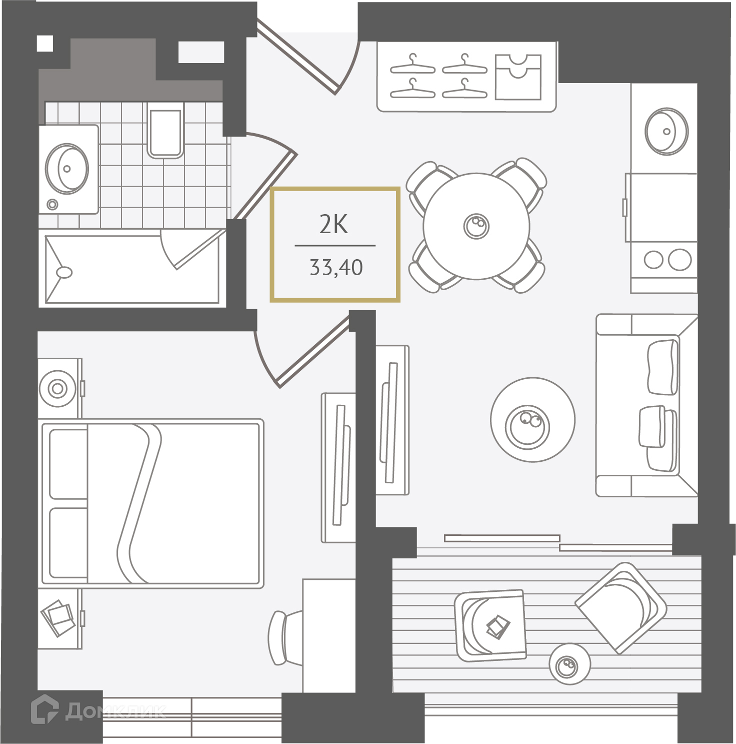 - Общая площадь: 33.7 м²