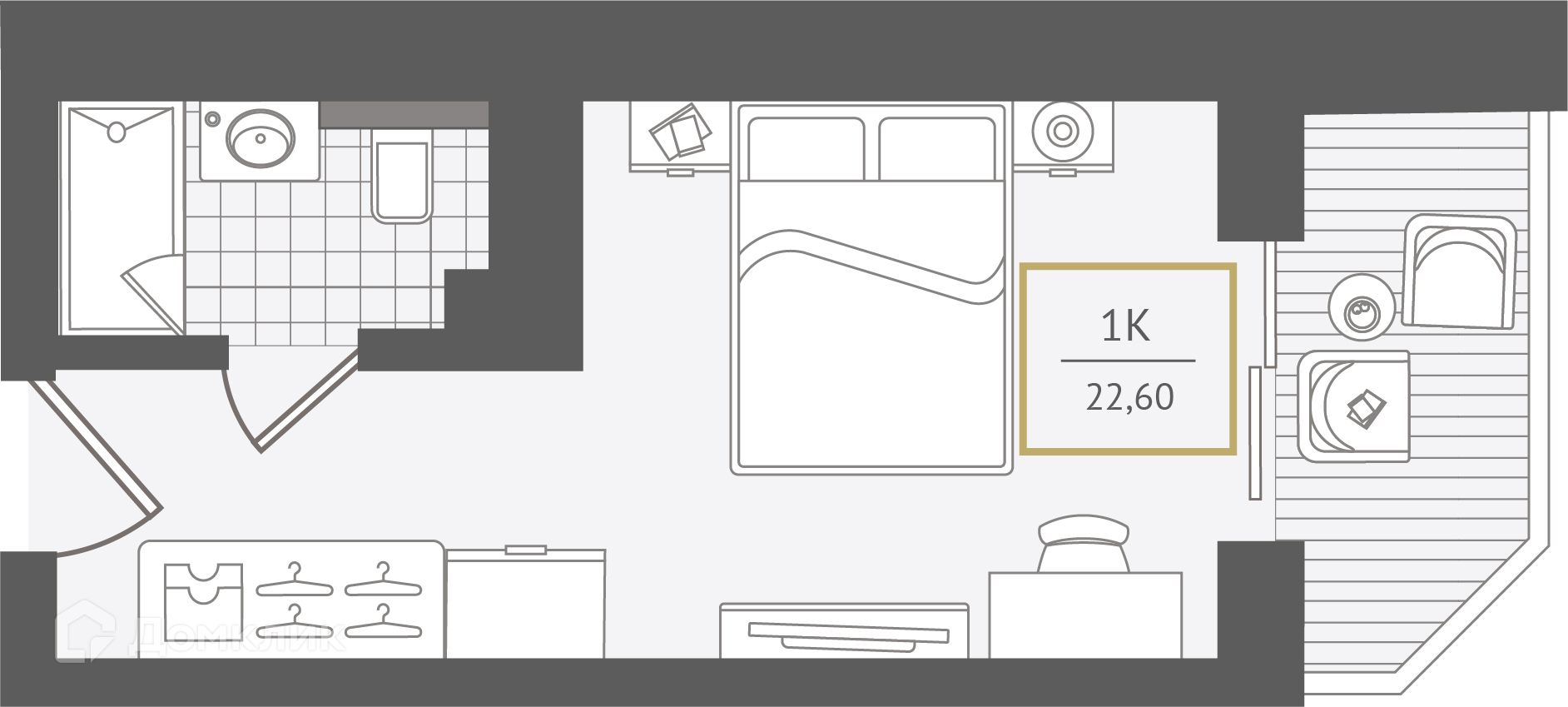 - Общая площадь: 22.9 м²