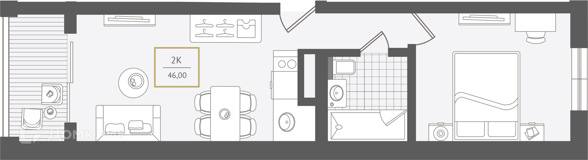 - Общая площадь: 46.4 м²