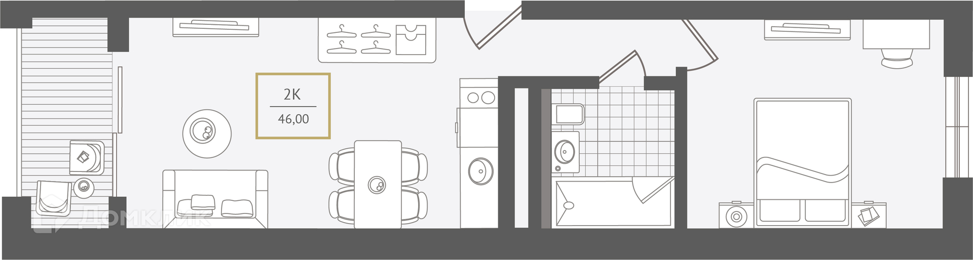 - Общая площадь: 46.9 м²