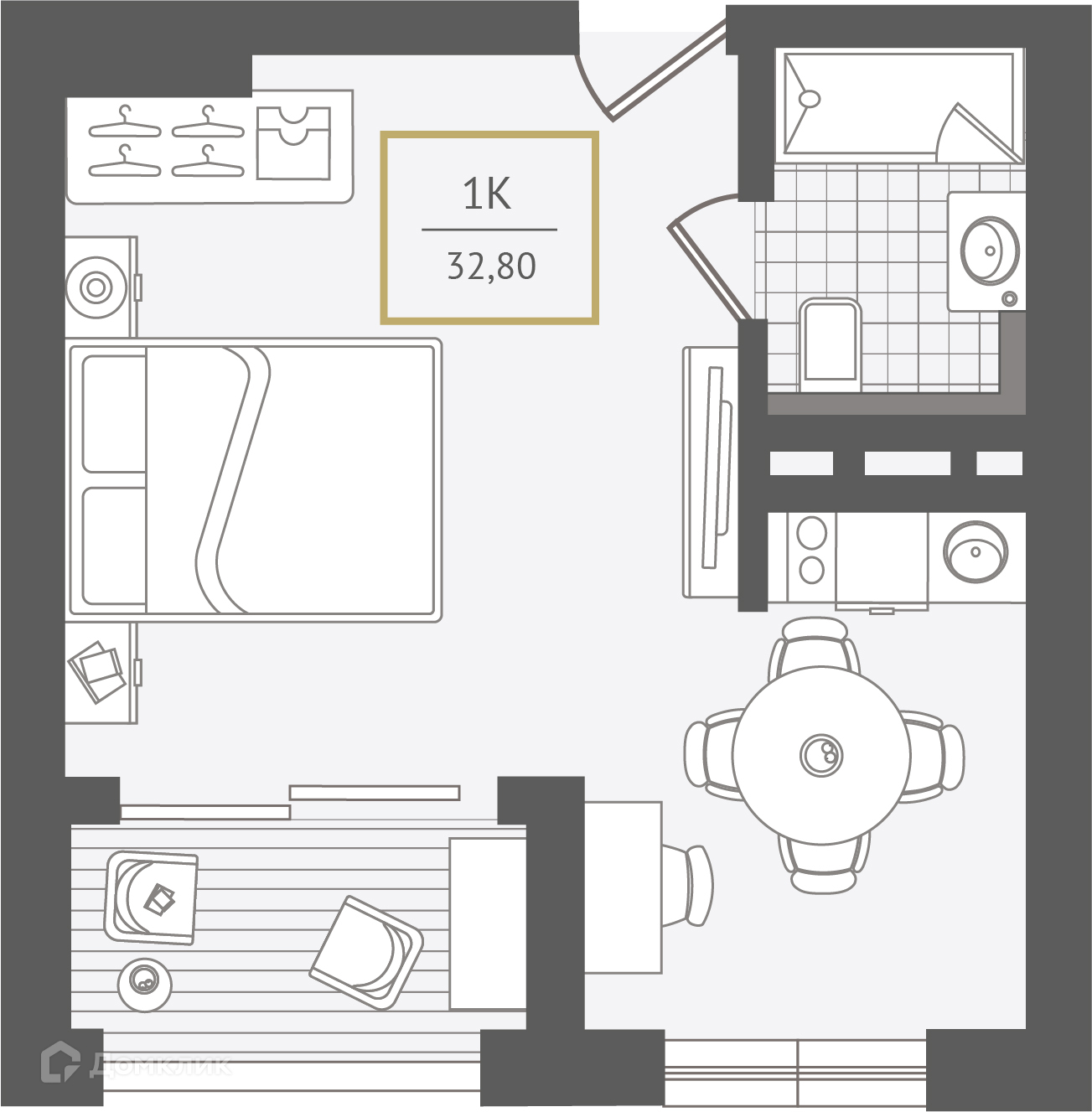 - Общая площадь: 32.7 м²