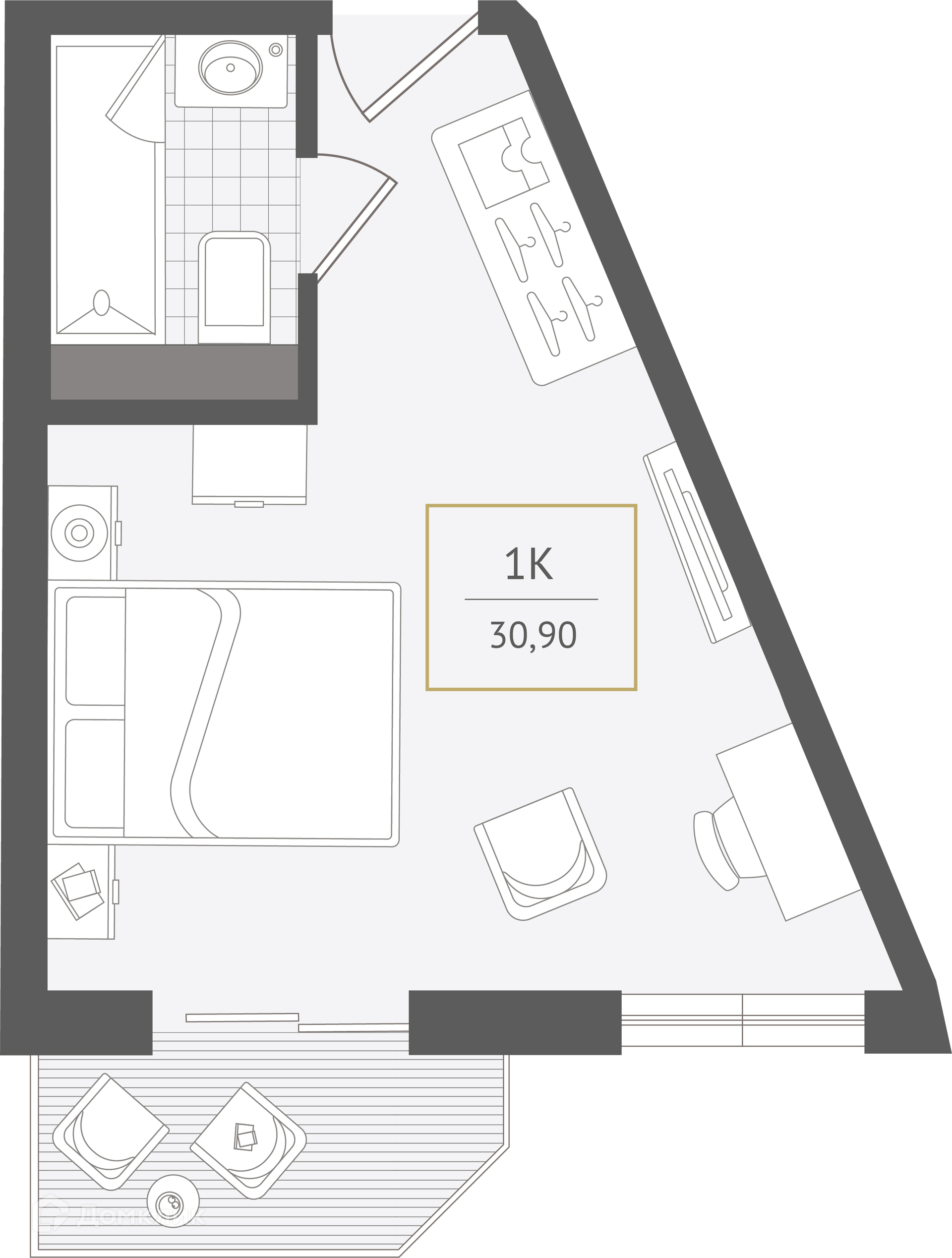 - Общая площадь: 30.9 м²