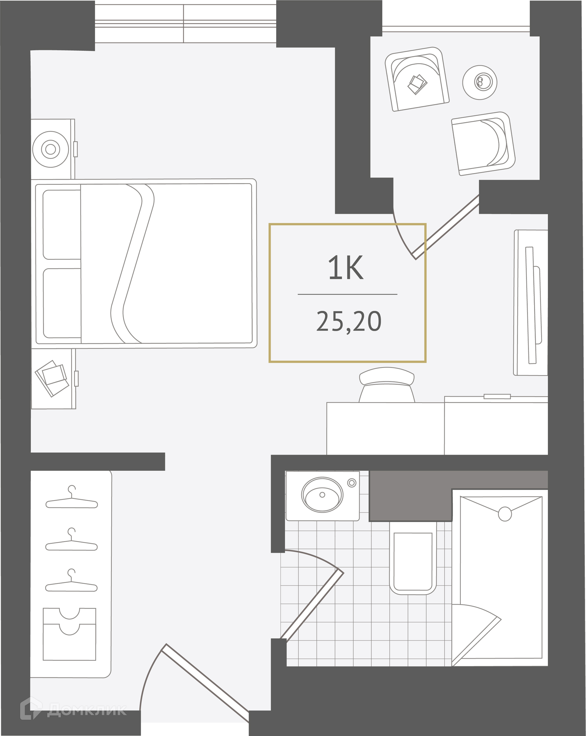 - Общая площадь: 25.2 м²