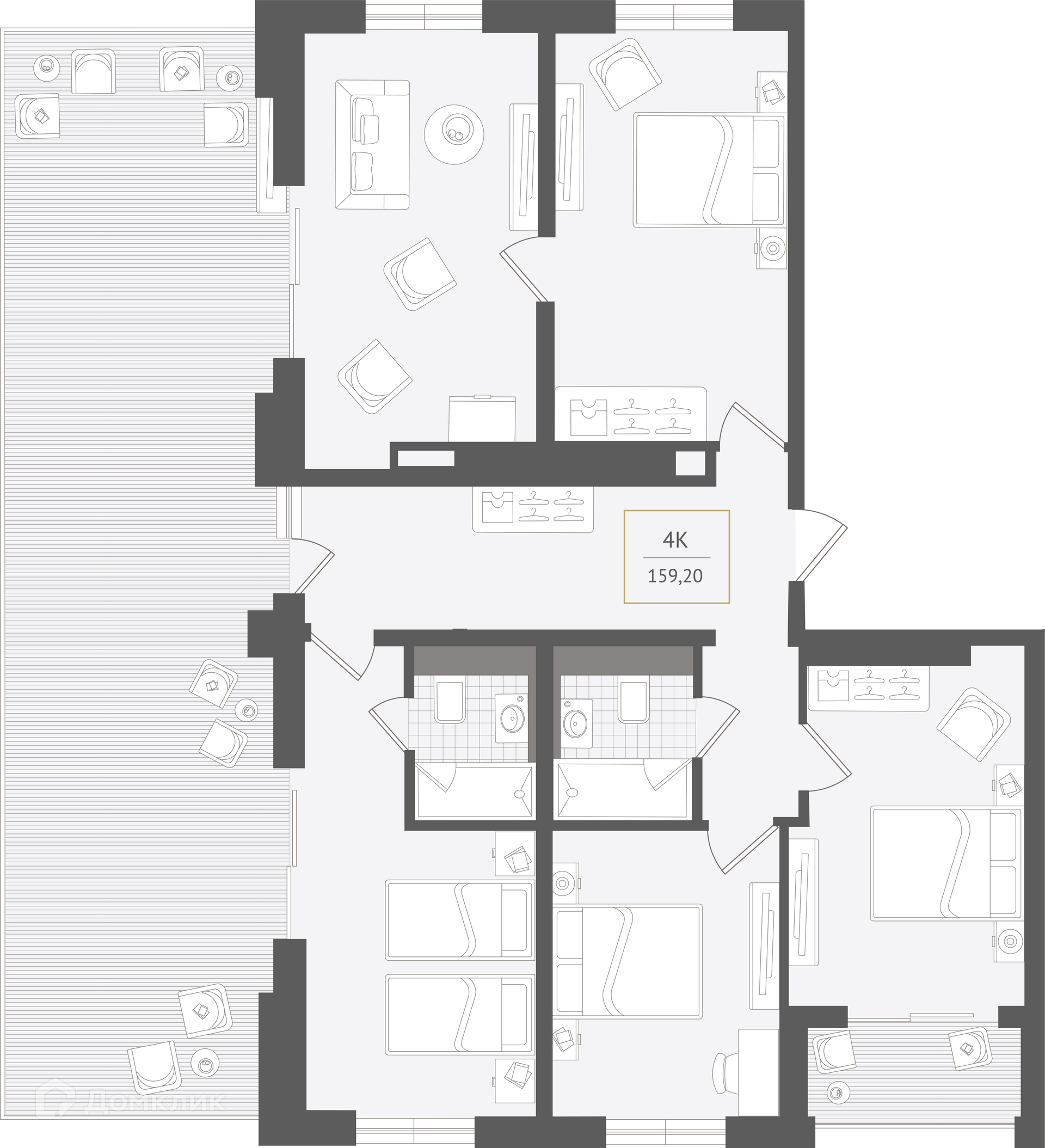 - ✅ Общая площадь: 159.2 м².
