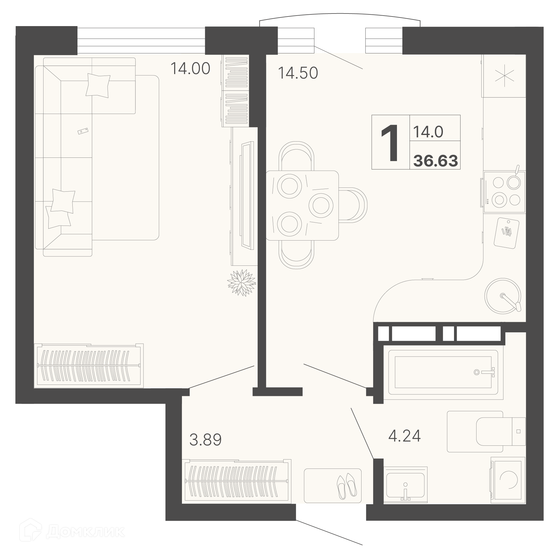 - ✅ Уютная жилая площадь: 14 м².