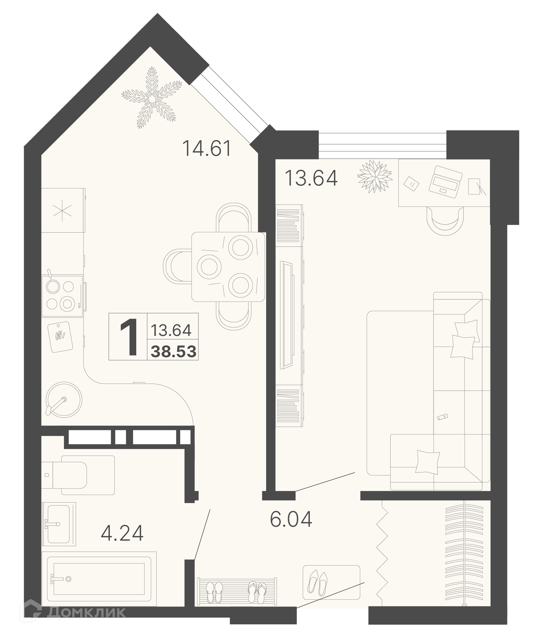 - ✅ Кухня: 0 м² — место для кулинарных шедевров.