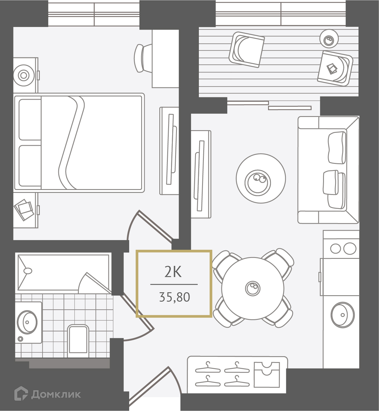 - Общая площадь: 36.1 м²