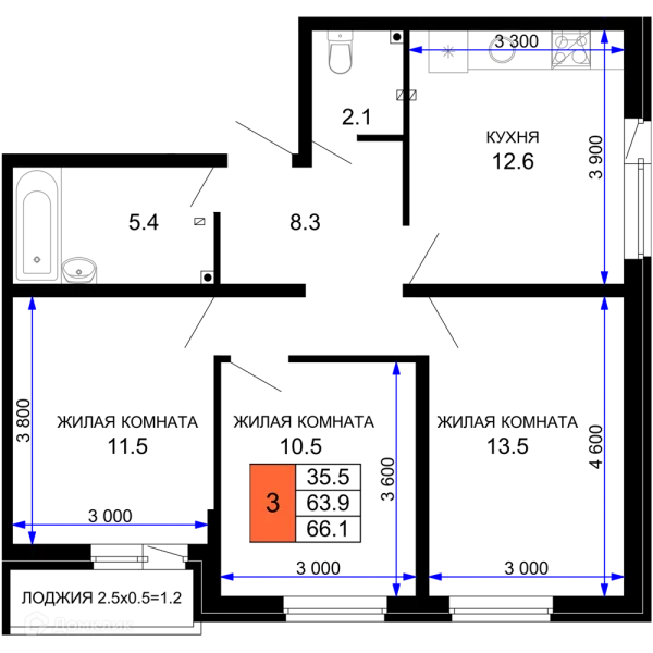 3 комн. квартира в Краснодаре в ипотеку от 87 022 руб/месяц