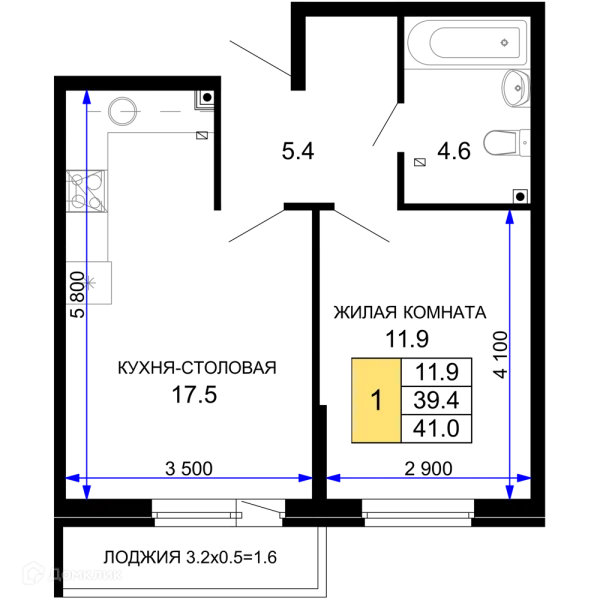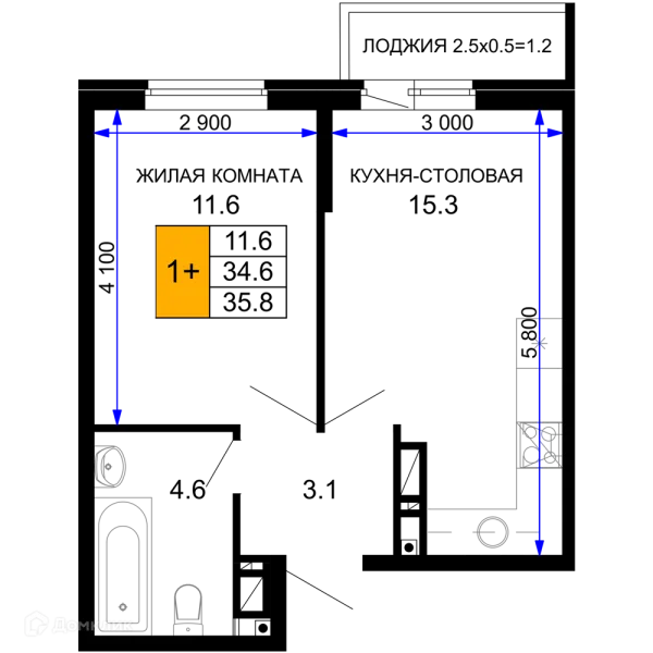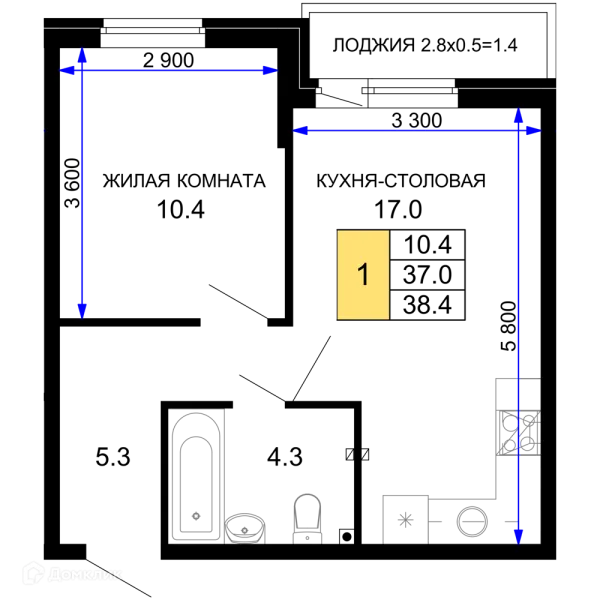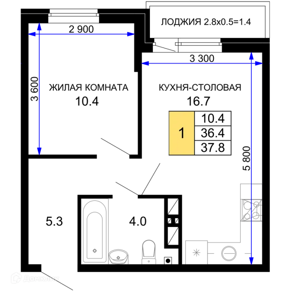 1 комн. квартира в Краснодаре в ипотеку от 56 781 руб/месяц