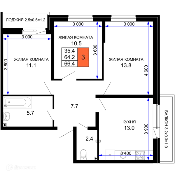 3 комн. квартира в Краснодаре в ипотеку от 89 104 руб/месяц