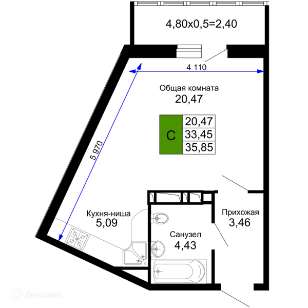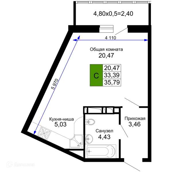 1 комн. квартира в Краснодаре в ипотеку от 70 093 руб/месяц