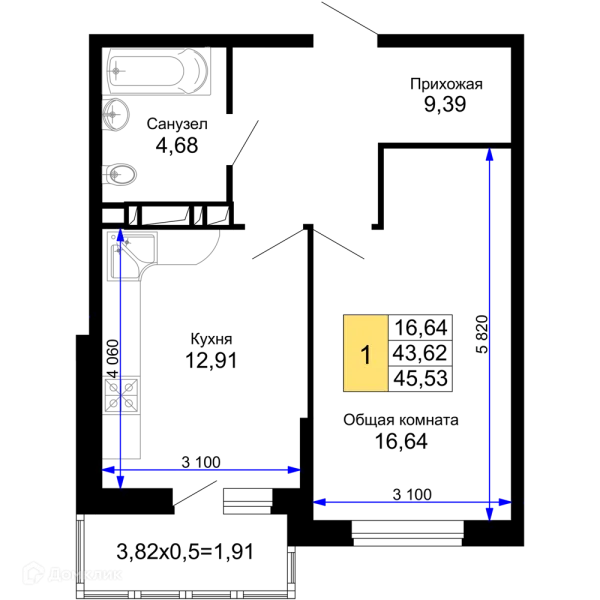 1 комн. квартира в Краснодаре в ипотеку от 63 764 руб/месяц