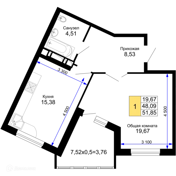 1 комн. квартира в Краснодаре в ипотеку от 76 293 руб/месяц