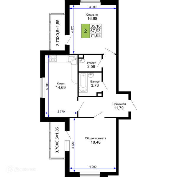 2 комн. квартира в Краснодаре в ипотеку от 116 675 руб/месяц