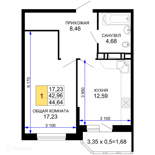 1 комн. квартира в Краснодаре в ипотеку от 71 041 руб/месяц