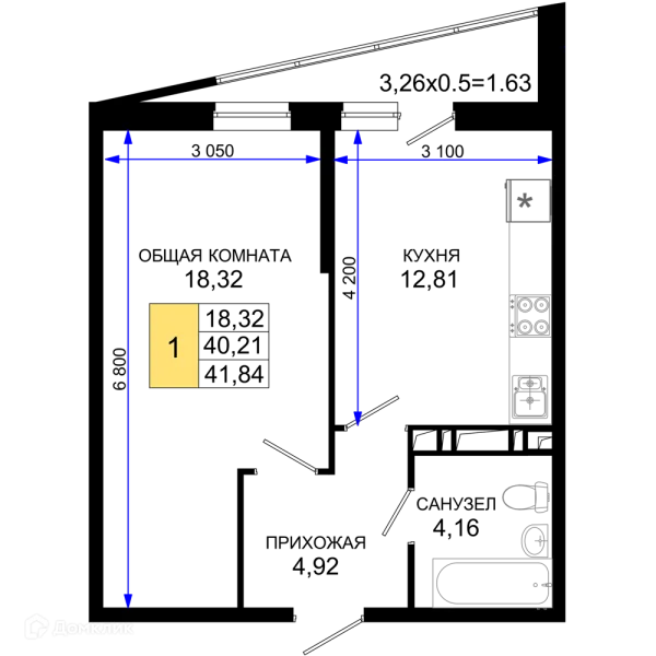 1 комн. квартира в Краснодаре в ипотеку от 76 879 руб/месяц