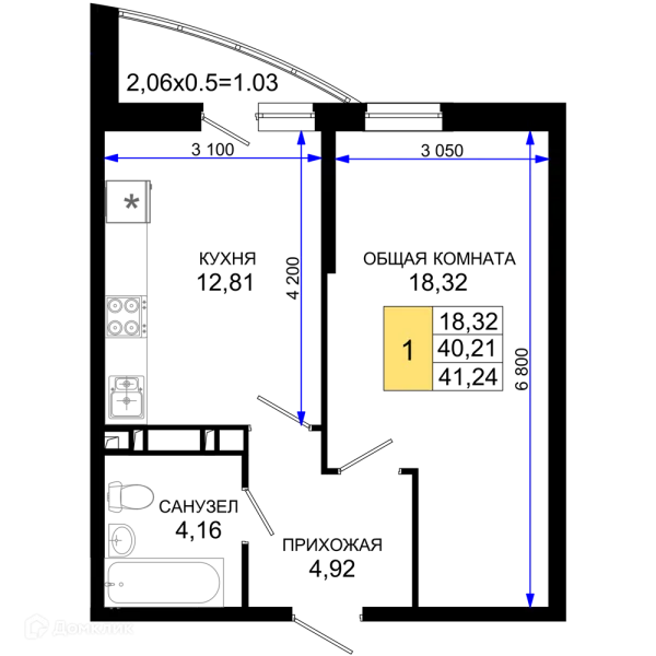 1 комн. квартира в Краснодаре в ипотеку от 76 058 руб/месяц