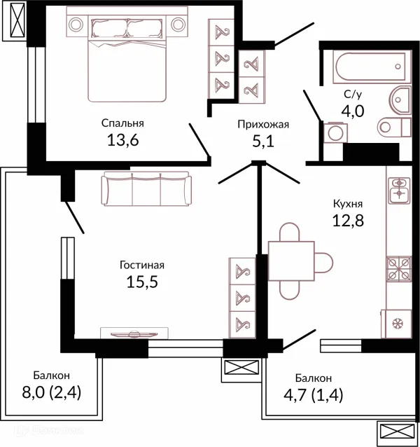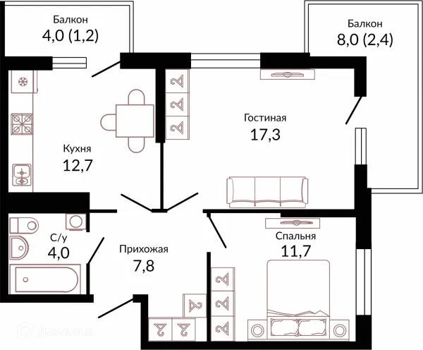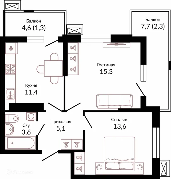 2 комн. квартира в Краснодаре в ипотеку от 51 106 руб/месяц