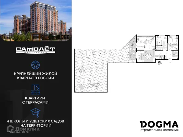 3 комн. квартира в Краснодаре в ипотеку от 67 772 руб/месяц
