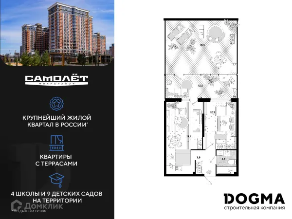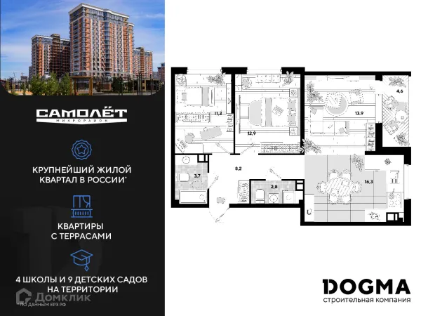 3 комн. квартира в Краснодаре в ипотеку от 255 868 руб/месяц