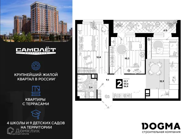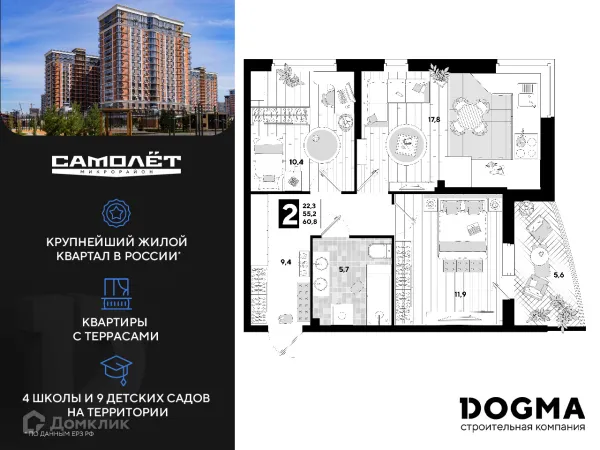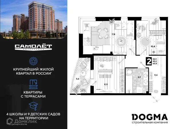 2 комн. квартира в Краснодаре в ипотеку от 58 612 руб/месяц