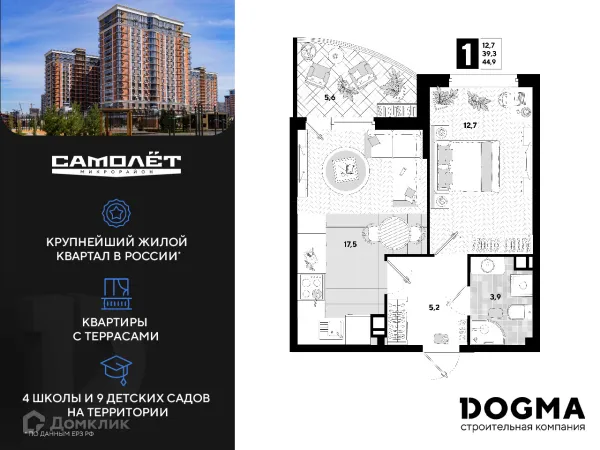1 комн. квартира в Краснодаре в ипотеку от 139 082 руб/месяц