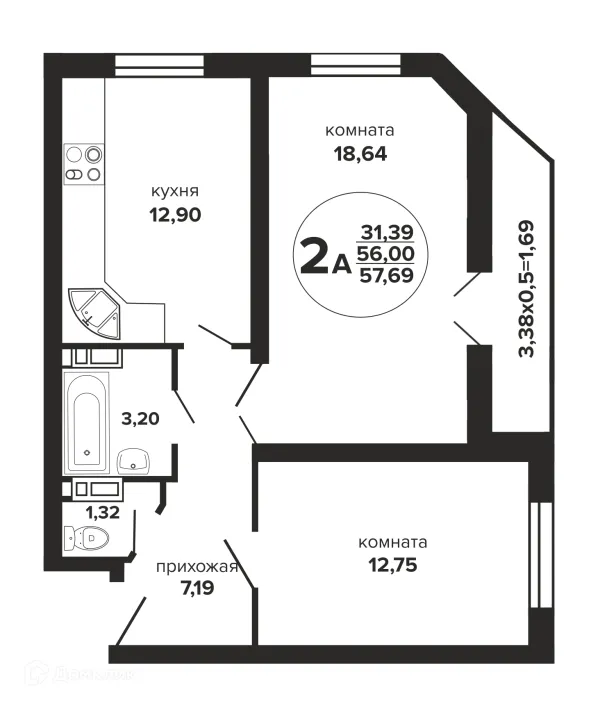 2 комн. квартира в Краснодаре в ипотеку от 46 239 руб/месяц